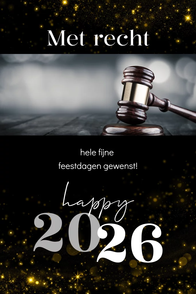 Op zoek naar een stijlvolle zakelijke kerstkaart voor een advocatenkantoor? Dan is deze kerstkaart zeker geschikt! De cijfers 26 en de tekst 'Met recht' zijn in goudfolie vormgegeven voor een extra vleugje luxe. De zwarte achtergrond met sparkles en glitters maakt het een echte feestelijke kerstkaart! Voeg eventueel je eigen foto toe aan deze zakelijke kerstkaart. Hulp nodig bij het ontwerpen? Ons team helpt je graag!