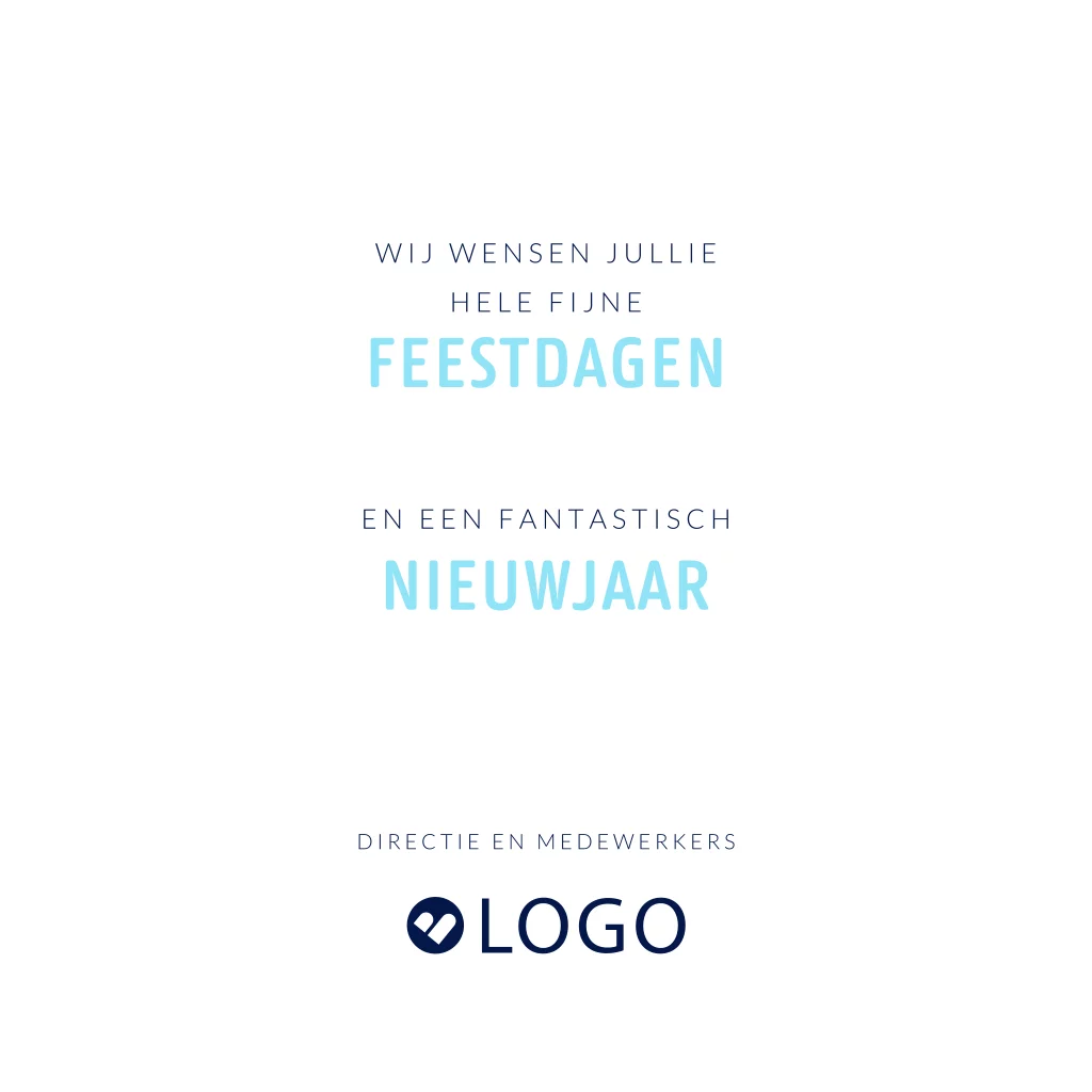 Zakelijke kerstkaart om je zakelijke relaties en medewerkers fijne feestdagen te wensen en er samen een goed 2026 van te maken. Op deze kaart verschillende blauwe vlakken met een fotocollage van foto's die passen binnen de transport en logistiek.