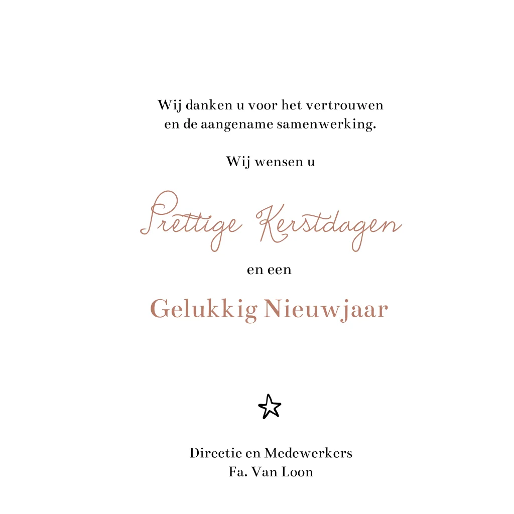 Hippe zakelijke kerstkaart met de tekst " Best wishes and a wonderful Christmas". Voor deze kaart is een trendy achtergrond kleur gebruikt met de tekst in zwart en wit en in verschillende lettertypes. Deze kaart is voor alle branches geschikt en op de binnenzijde is ruimte om een bedrijfslogo toe te voegen. Teksten, kleuren en lettertypes zijn aan te passen in de editor.