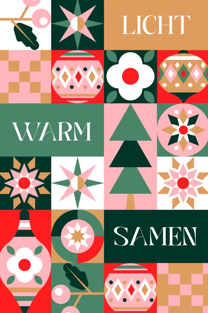 Wens je medewerkers en zakelijke relaties een succesvol 2026 met deze hippe zakelijke kerstkaart. Deze kerstkaart is geschikt voor bedrijven uit diverse sectoren en branches. Het vrolijke en kleurrijke ontwerp zorgt voor een feestelijke en positieve uitstraling. Op deze kleurrijke kerstkaart zie je allerlei vrolijke kerst illustraties. Pas deze kerstkaart naar eigen wens aan in onze online editor. Verspreid de kerstvreugde en laat je zakelijke relaties weten dat je aan ze denkt tijdens de feestdagen. Hulp nodig? We helpen je graag.