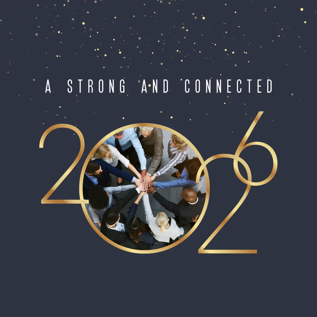 Connected 2026 kerstkaart zakelijk met jaartal en foto