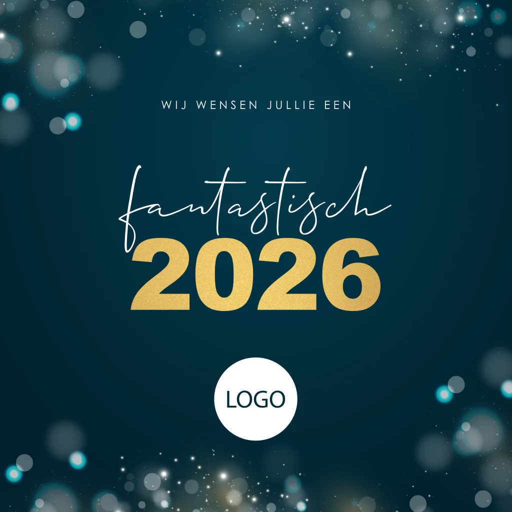Zakelijke kerstkaart met eigen logo en goudlook jaartal