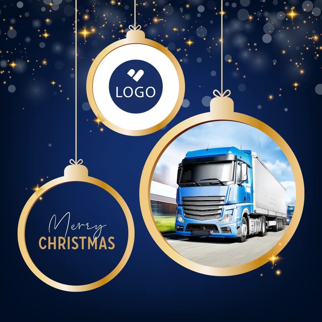 Zakelijke kerstkaart voor bedrijven in de internationale transport sector. Op deze kaart is het mogelijk om op de voorzijde een eigen bedrijfslogo toe te voegen. Deze kaart is voor alle branches en sectoren geschikt. De gebruikte foto is ook te vervangen voor een eigen bedrijfsfoto. Hulp nodig bij het aanpassen van deze kaart? We helpen je graag!