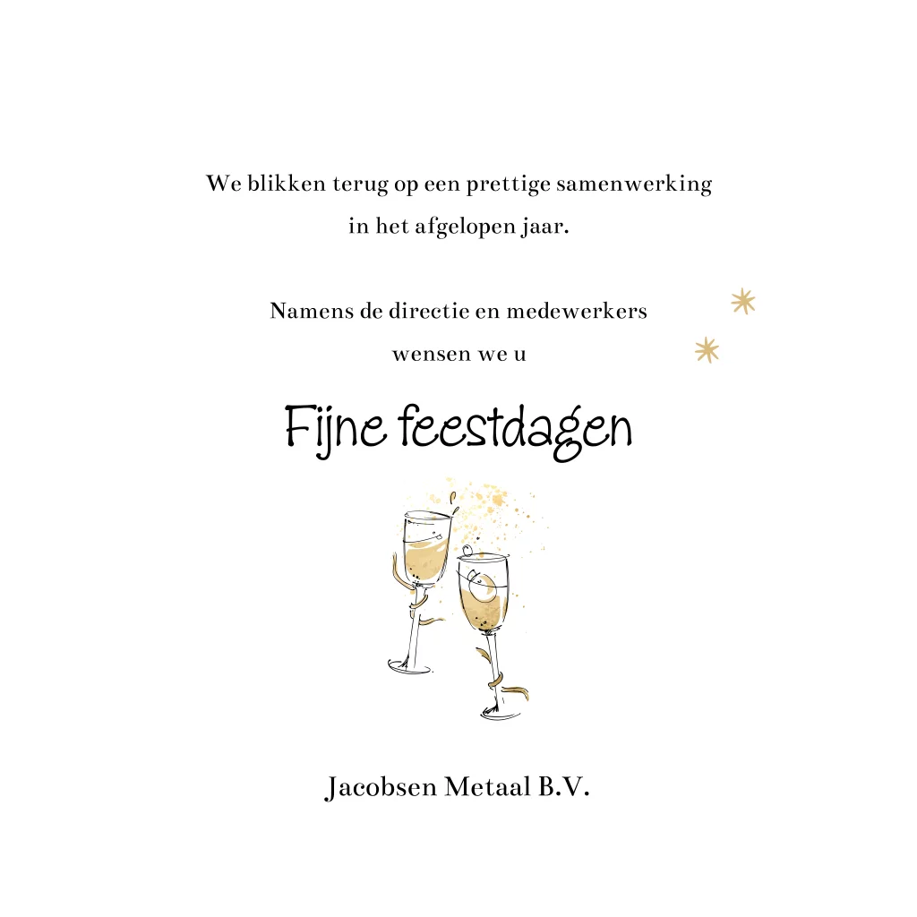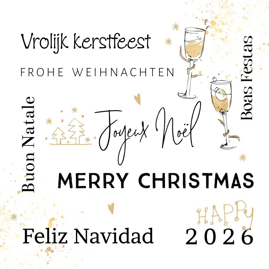 Meertalige zakelijke kerstkaart met handlettering en proostende glazen