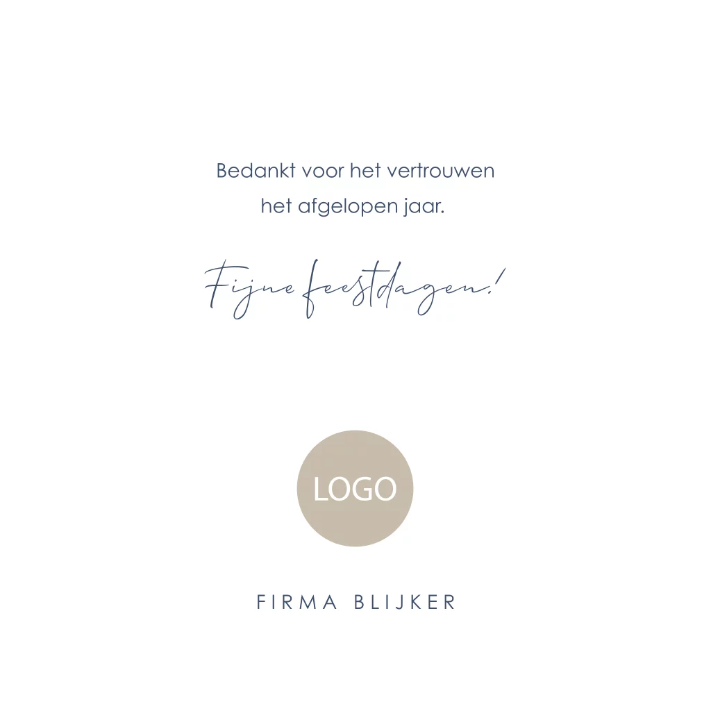 Het is mogelijk om op deze kerstkaart je eigen bedrijfslogo toe te voegen. De afbeelding van het logo dient als voorbeeld en wordt niet gedrukt. Deze kun je verwijderen of plaats hier je eigen logo overheen.