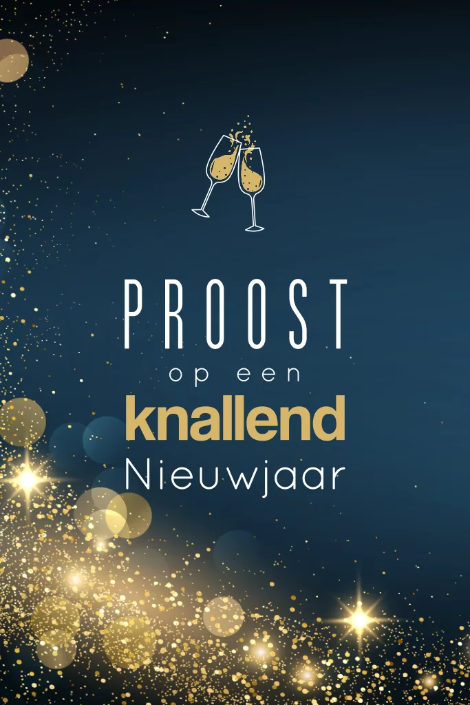 Een stijlvolle zakelijke kerstkaart met ronde hoeken. Op deze kaart staan proostende champagne glazen afgebeeld, met bijpassende tekst. Deze kerstkaart is voor verschillende bedrijven te gebruiken. Op de achterzijde is ruimte voor een persoonlijke tekst en een logo. Deze zijn makkelijk aan te passen in onze editor.