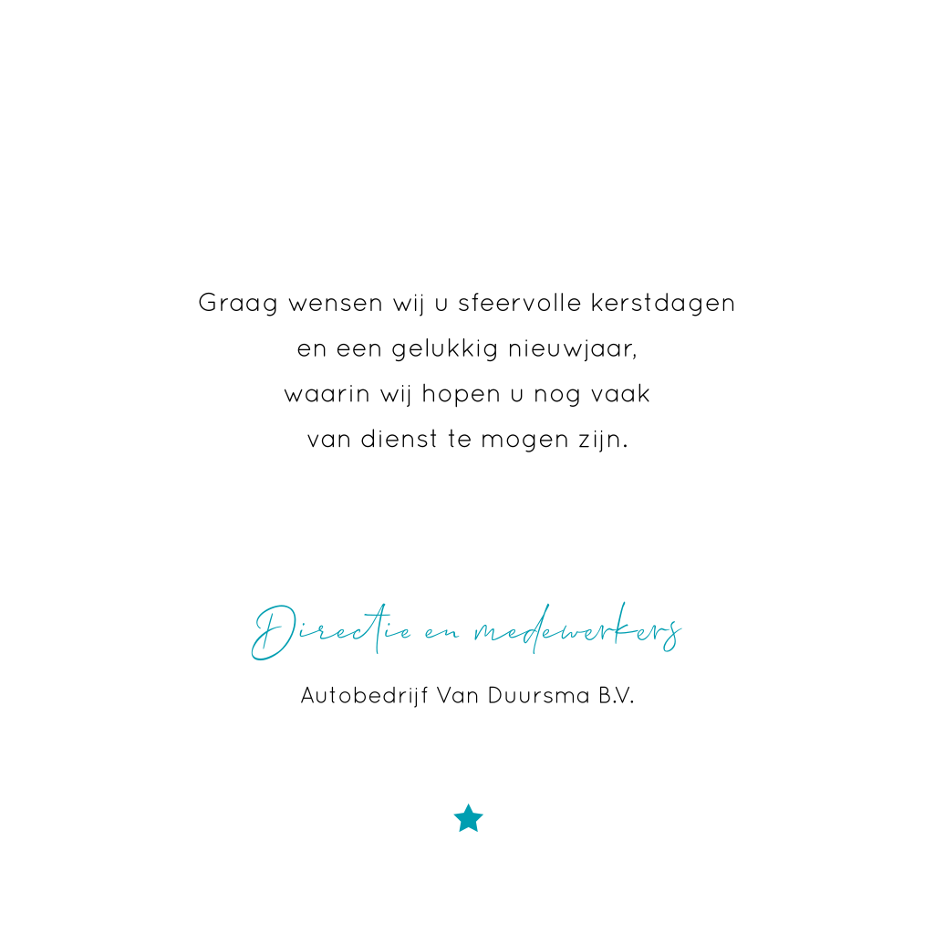 Zakelijke kerstkaart met foto's voor de transport en logistieke sector. Op de binnenzijde van deze zakelijke kaart is er ruimte voor een passende tekst en een bedrijfslogo. Om de kaart nóg persoonlijker te maken is het mogelijk de foto's te vervangen voor eigen foto's. Het ontwerpteam van Blijkaartje helpt je graag bij het aanpassen van de kaart.