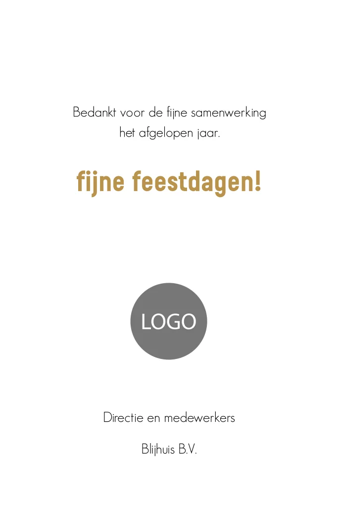Aan de binnenkant van de kaart voeg je een eigen bedrijfslogo toe en een persoonlijke kerstgroet. Hulp nodig bij het ontwerpen? Laat het ons gerust weten.