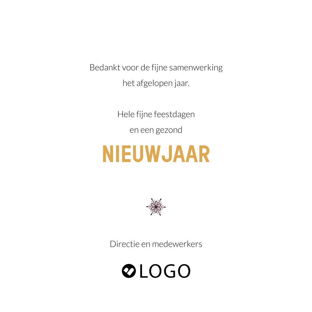 Ga samen op weg naar een succesvol nieuwjaar met deze zakelijke kerstkaart en wens je klanten, zakelijke relaties en medewerkers fijne feestdagen. Op deze kaart een mooie bordeaux achtergrond met een foto van een uitgestrekte weg. Liever een eigen foto? Pas dit gemakkelijk aan in onze editor. Hulp nodig? We helpen je graag!