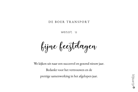 Een zakelijke kerstkaart voor de transport en logistieke sector. De foto met de vrachtwagen is te vervangen voor een eigen foto. Op deze kaart is het ook mogelijk om een eigen bedrijfslogo toe te voegen.