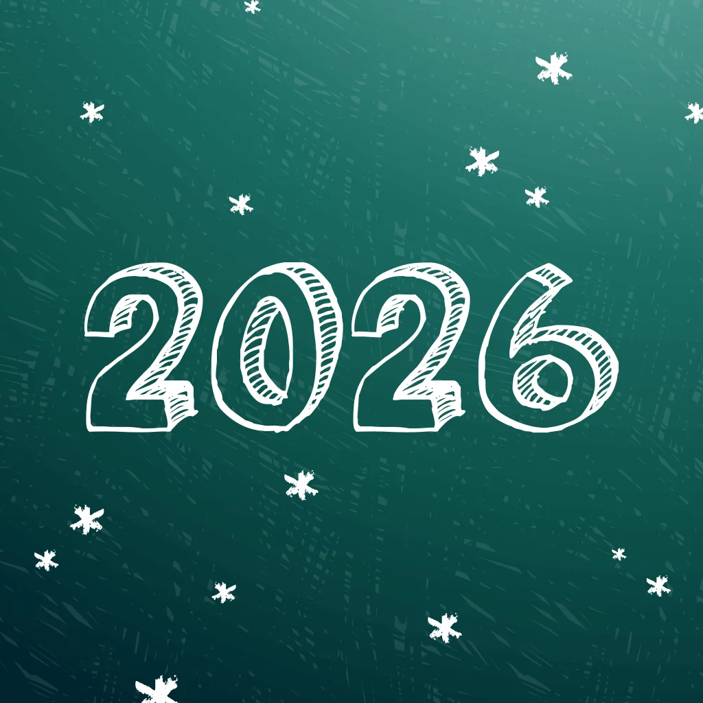 Zakelijke kerstkaart met schoolbord, 2026 en sterren