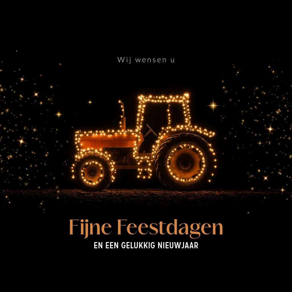 Zakelijke kerstkaart met tractor met kerstverlichting en logo