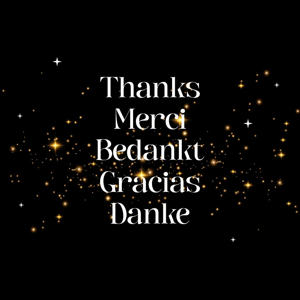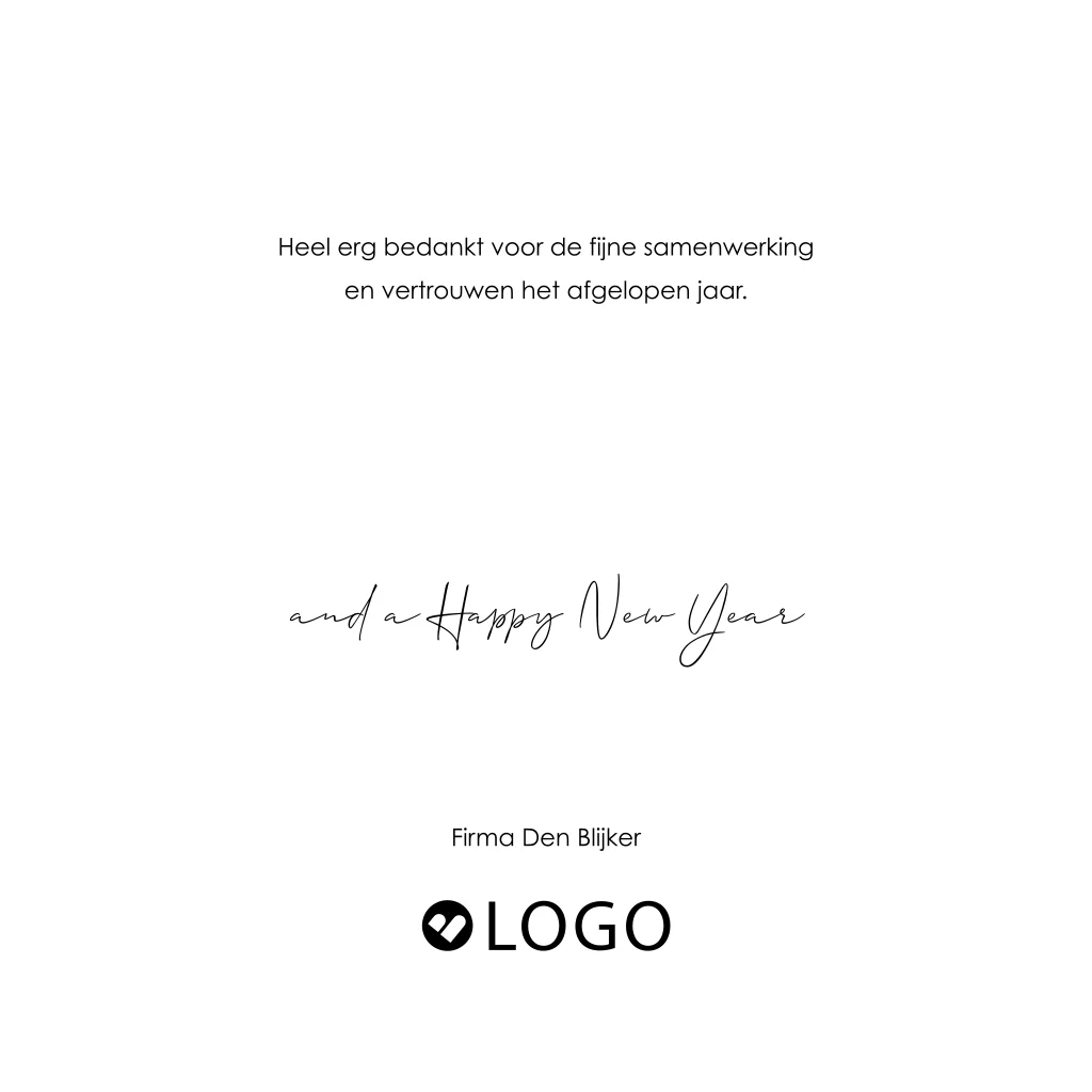 Feestelijke zakelijke kerstkaart met foliedruk. Deze kerstkaart met glitters en sparkles geeft gelijk een feestelijk kerstgevoel. De kaart is zwart met gouden foliedruk wat een luxe uitstraling geeft. Op de kerstkaart de tekst ´bedankt´ in verschillende talen. Hierdoor is deze zakelijke kerstkaart zeker geschikt voor de internationale branche.