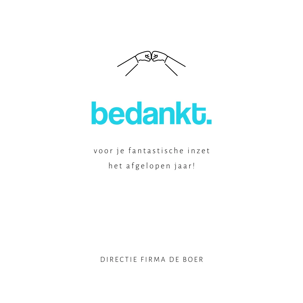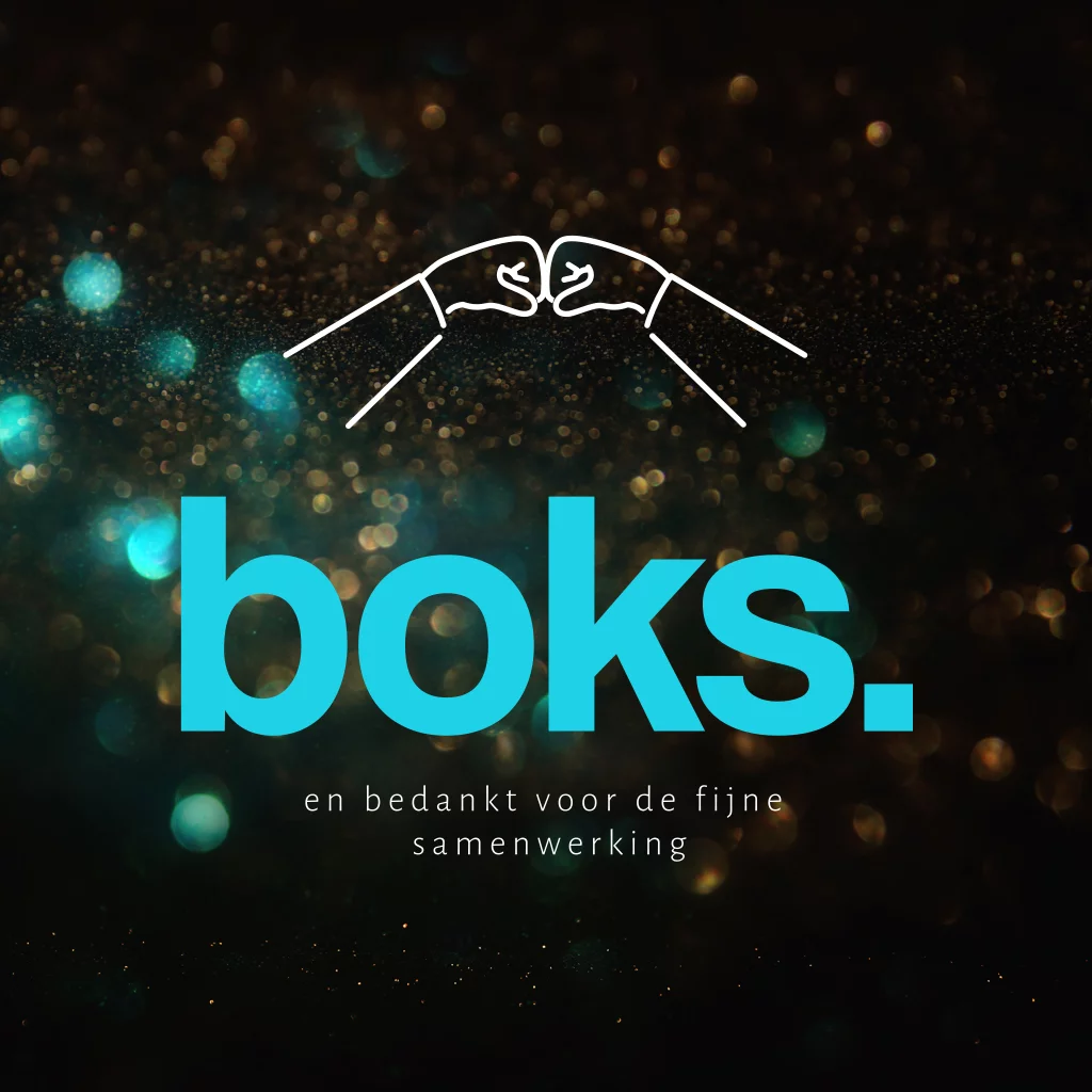 Stoere zakelijke kerstkaart waarmee je al je medewerkers en/of klanten een fantastisch nieuwjaar wenst. Op deze kerstkaart boksende vuisten en de tekst "boks" in grote blauwe letters voor een donkere, sprankelende achtergrond. Geschikt voor alle sectoren. Hulp nodig bij het aanpassen van de kaart? We helpen je graag verder.