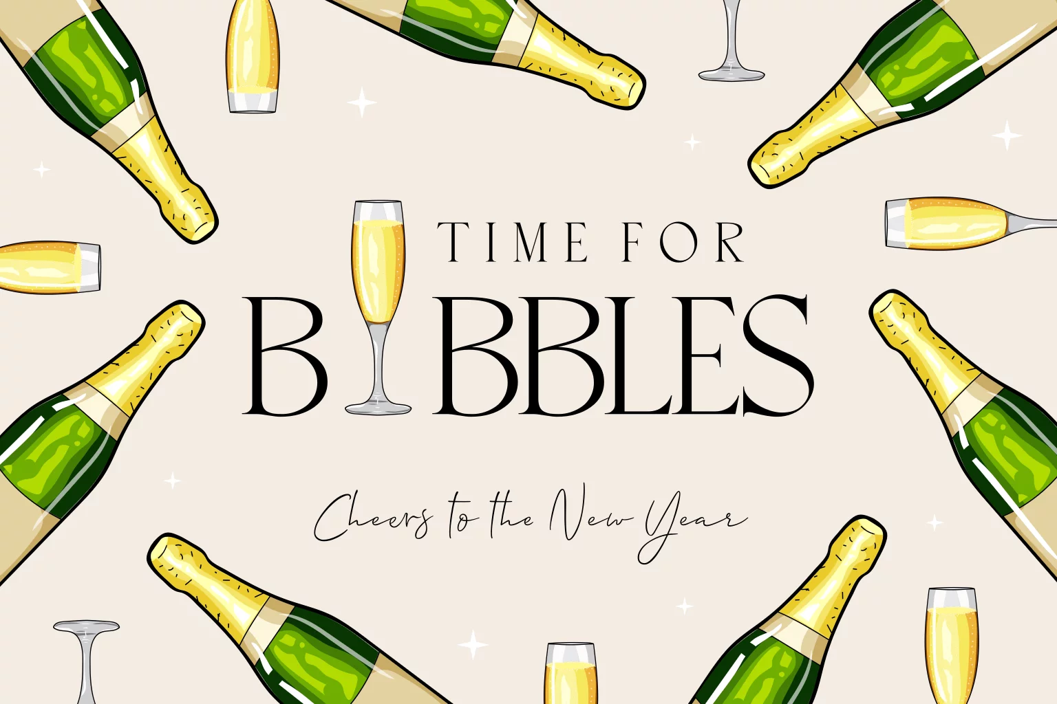 Time for bubbles! Dat gaat zeker lukken met deze feestelijke zakelijke nieuwjaarskaart met champagne en afgeronde hoeken. Deze kerstkaart heeft een beige achtergrond met champagne bubbles, champagne glazen en sparkles. Wens met deze zakelijke kerstkaart al je zakelijke relaties hele fijne feestdagen en een Happy New Year.