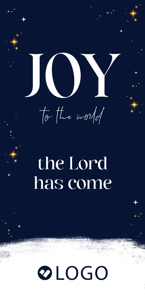 Een christelijke zakelijke kerstkaart die vrede en Joy brengt aan al je zakelijke relaties. Deze kerstkaart kun je ook als reguliere kerstkaart gebruiken. Verwijder dan simpelweg het zakelijk logo en pas de tekst aan in de editor.