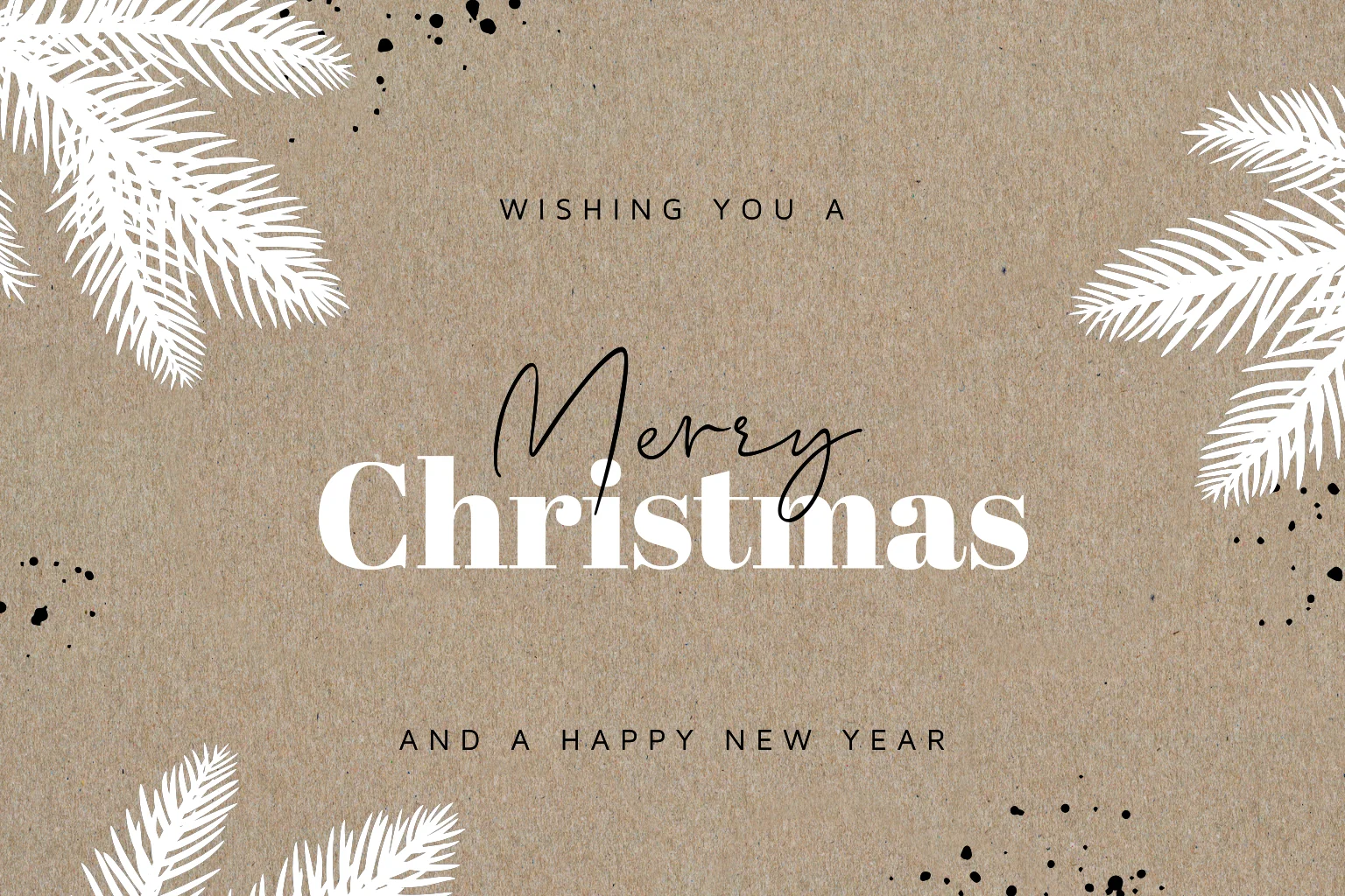 Een zakelijke kerstkaart op écht kraftpapier om je medewerkers een "Merry Christmas" toe te wensen. Op dit kaartje staan illustraties van dennentakken met dennenappels en wordt de tekst weergegeven in verschillende lettertypes. Kraftpapier is een stevig papiersoort met een stoere uitstraling. Wil je toch liever een persoonlijke tekst toevoegen, dat kan heel eenvoudig in onze editor.