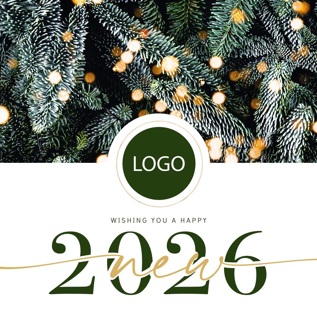 Trendy zakelijke kerstkaart waarop eenvoudig een eigen foto en logo op de voorkant te plaatsen is. Hulp nodig bij het aanpassen van deze kaart? We helpen je graag!