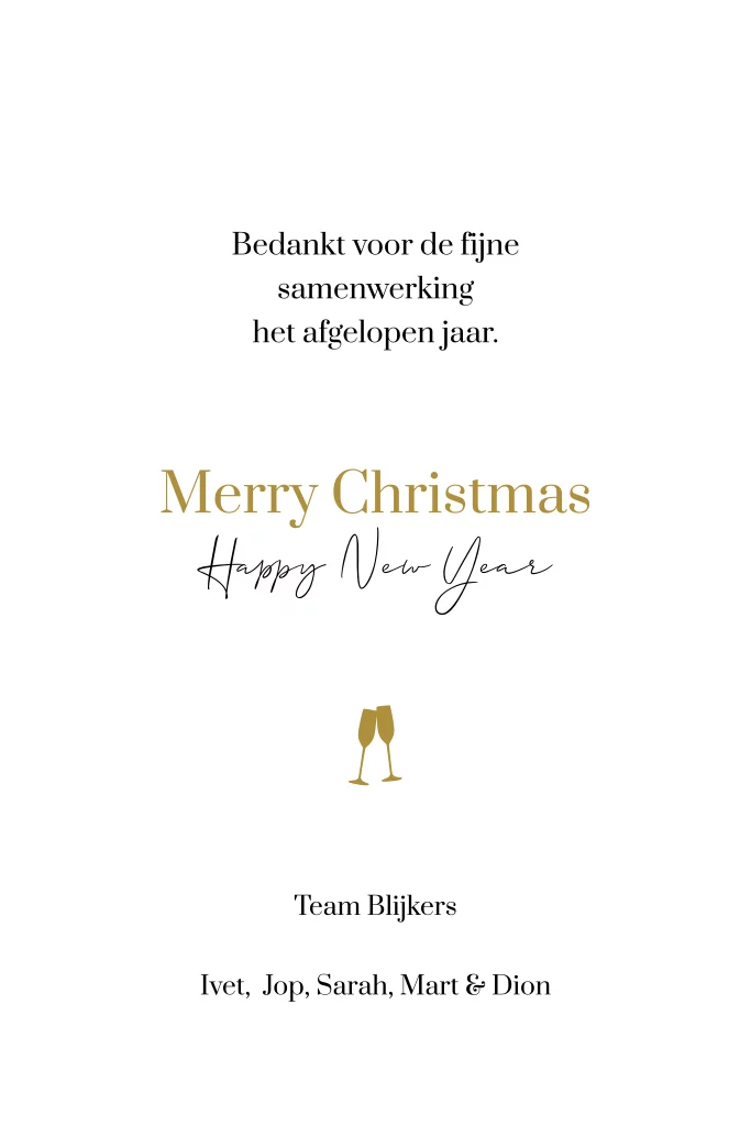 Een zakelijke kerstkaart geschikt voor veel bedrijven. Deze hippe kaart is rustig. Voeg eenvoudig een eigen foto en eigen logo toe. Hulp nodig bij het ontwerpen? Laat het ons gerust weten.
