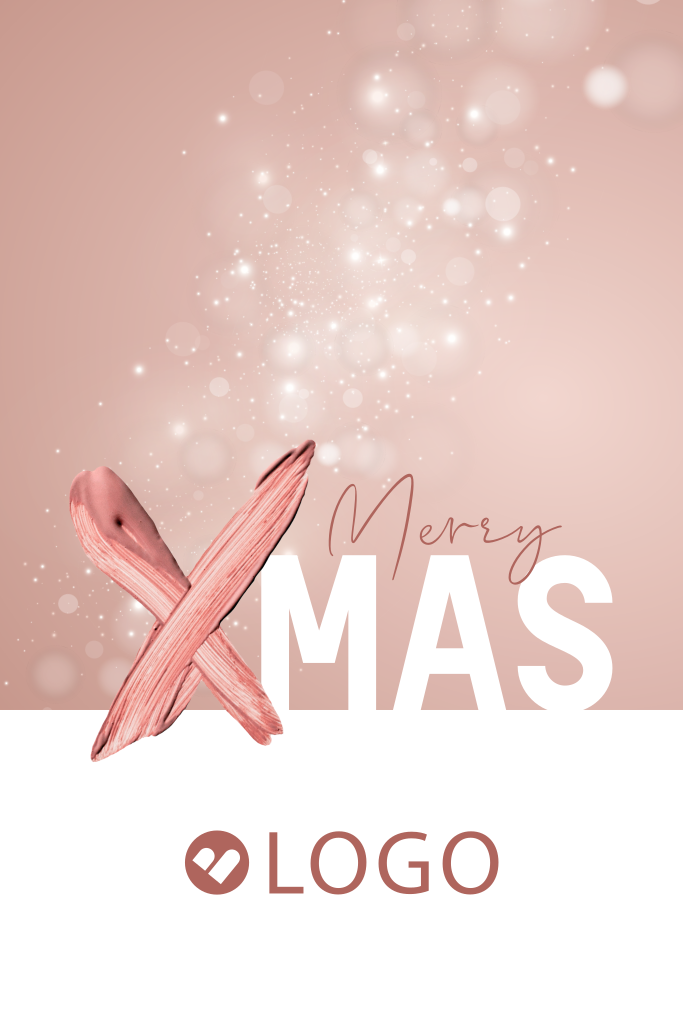 Wens je klanten fijne feestdagen met deze mooie, roze zakelijke kerstkaart. Deze kaart is speciaal voor een bedrijf in de sector beauty zoals een beautysalon. Op deze kaart een mooie roze achtergrond met de 'x' van XMAS met een lippenstift geschreven. Op de kaart is ruimte voor het logo van jouw bedrijf.
