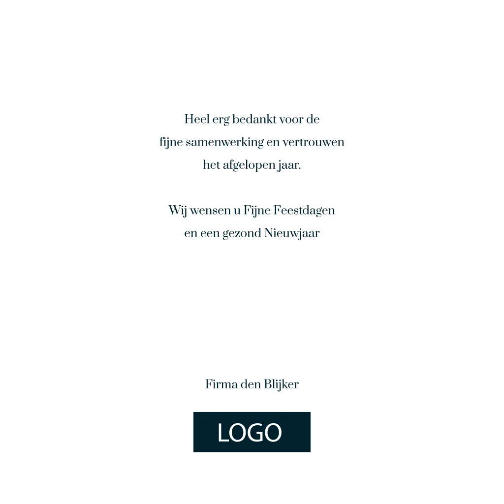 Wens je zakelijke relaties, medewerkers en klanten bright wishes for the New Year! Uniek aan deze kerstkaart is het gebruik van écht foliedruk, namelijk goudfolie. Dat geeft deze kerst kaart een luxe uitstraling. Op deze kaart een mooie blauwe achtergrond met ijskristallen. Geschikt voor bedrijven uit diverse sectoren en branches. De afbeelding van het logo op de binnenzijde dient als voorbeeld en wordt niet gedrukt. Deze kun je verwijderen of plaats hier je eigen logo overheen.