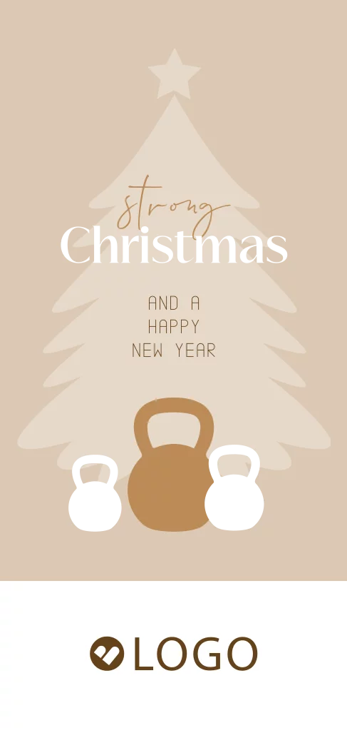 Trendy zakelijke kerstkaart met kettlebell en de toepasselijke tekst 'Strong Christmas and a happy New Year'. Deze kerstkaart heeft trendy kleuren met mooie glanzende goudfolie. Perfect voor bijvoorbeeld een sportschool of personal trainer die hun zakelijke relaties fijne feestdagen wil wensen. Voeg een eigen bedrijfslogo toe voor de persoonlijke touch. Hulp nodig? Ons team staat voor je klaar.