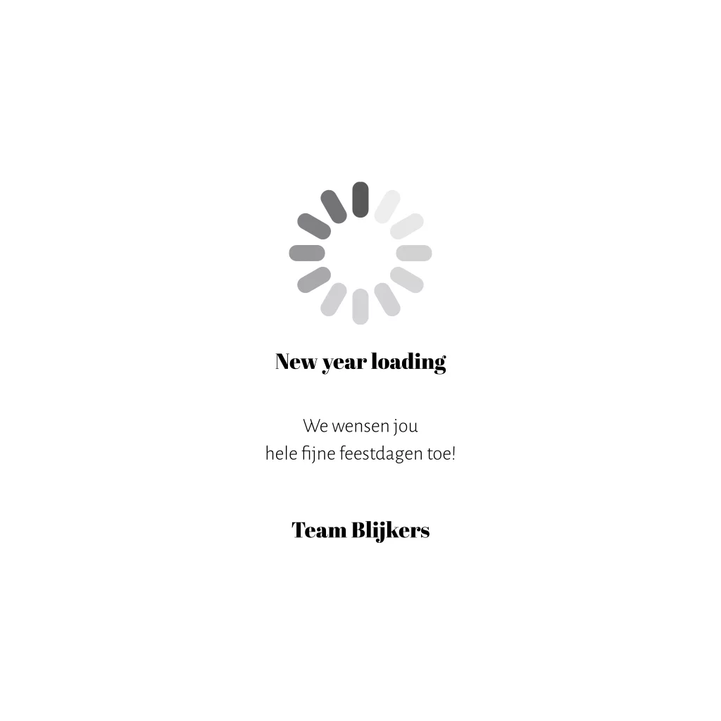 Luxe zakelijke kerstkaart om al je zakelijke relaties, medewerkers en klanten te bedanken voor het afgelopen jaar en fijne feestdagen te wensen. Op deze kaart zie je de loading van het nieuwe jaar, 2026, met op de achtergrond zilverkleurige glitters tegen een zwarte achtergrond. Helemaal geschikt voor bedrijven in de sector dienstverlening zoals een ICT bedrijf, administratiekantoor of accountantskantoor. Deze kaart is extra speciaal door het gebruik van echt foliedruk, namelijk zilverfolie.