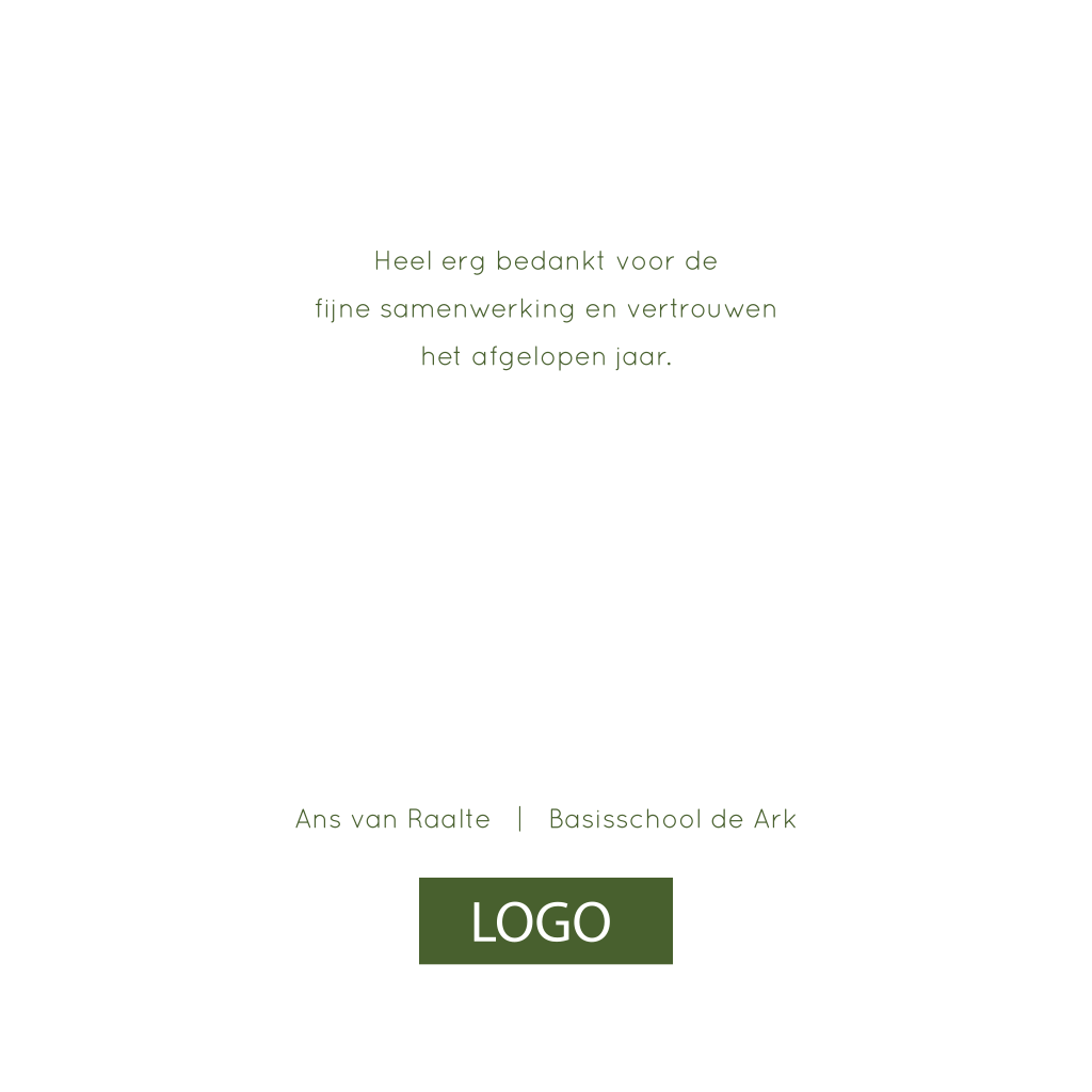 Op deze kaart is het mogelijk om een eigen bedrijfslogo toe te voegen. De afbeelding van het logo dient als voorbeeld en wordt niet gedrukt. Deze kun je verwijderen of plaats hier je eigen logo overheen.