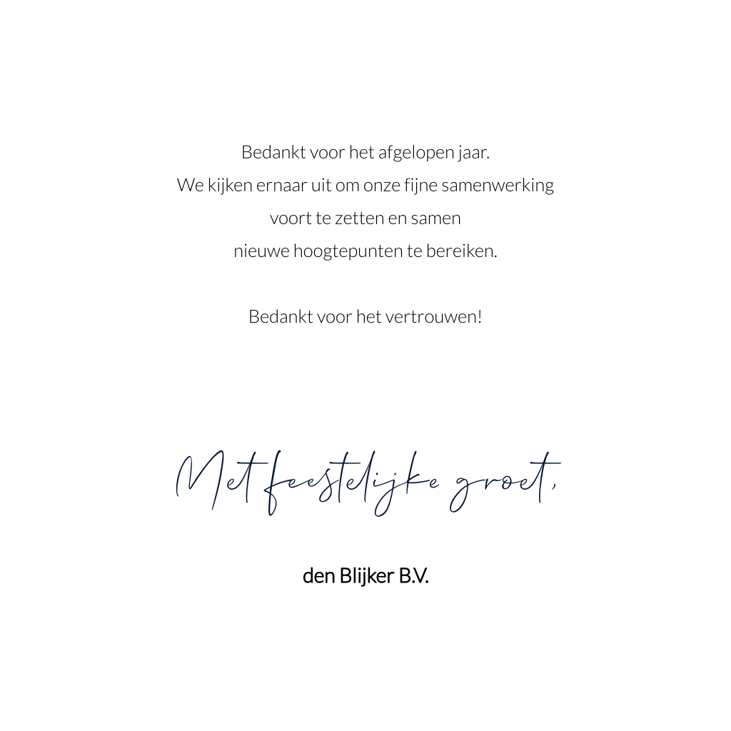 Wens al je zakelijke relaties een fijne Kerst en Gelukkig Nieuwjaar met deze zakelijke kerstkaart. Op deze zakelijke kaart een blauwe achtergrond met pijpleidingen in de vorm van een kerstboom. De leidingen worden gedrukt in écht zilverfolie. Deze kaart past helemaal bij een bedrijf in de techniekbranche zoals een loodgietersbedrijf.