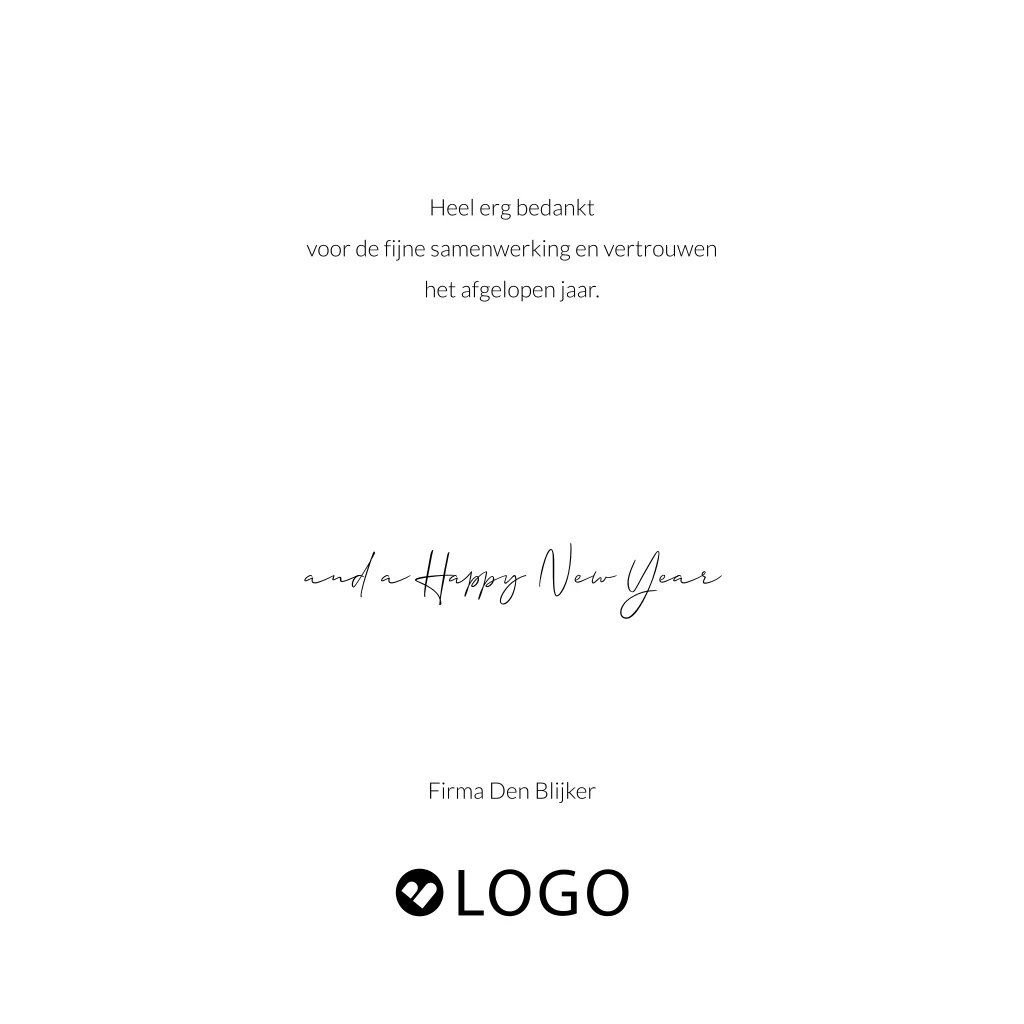 Feestelijke zakelijke kerstkaart met foliedruk. Deze kerstkaart met glitters en sparkles geeft gelijk een feestelijk kerstgevoel. Deze kerstkaart is zwart met gouden foliedruk wat een luxe uitstraling geeft. Op de kerstkaart de tekst ´Merry Christmas´. Deze kerstkaart is voor allerlei branches geschikt. Voeg een eigen bedrijfslogo toe aan de binnenzijde voor de persoonlijke touch.