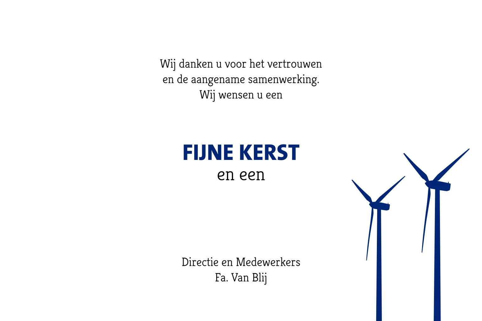 Zakelijke kerstkaart met kerstbomen, windturbines en goudfolie