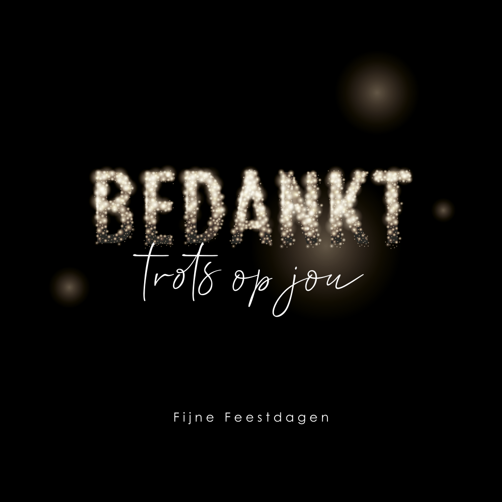 Sprankelende zakelijke kerskaart met glitters. Bedank hiermee je medewerkers en laat weten dat je trots op ze bent!