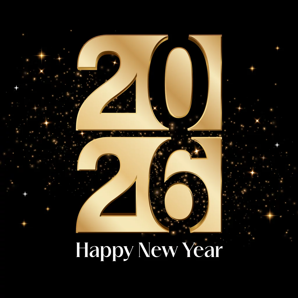 Vier de feestdagen in stijl met deze prachtige zakelijke goudlook kerstkaart. Deze kerstkaart is geschikt voor bedrijven uit diverse sectoren en branches. Op deze kerstkaart staat de tekst ´2026 Happy New Year'. Het jaartal 2026 staat centraal in het midden in goudkleurige cijfers. De sterretjes geven een feestelijk effect op de donkere achtergrond. Bewerk deze kerstkaart naar eigen wens in onze online editor. Kom je er niet uit? We helpen je graag!