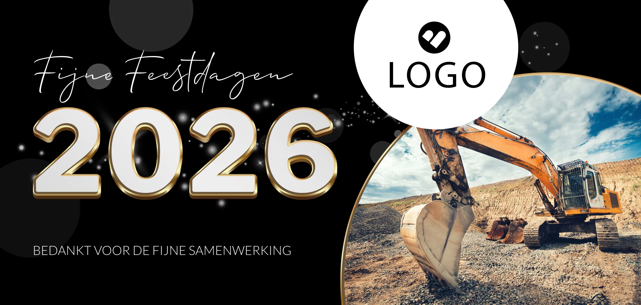 Ben je op zoek naar een stoere zakelijke kerstkaart voor de loon- en grondwerk branche? Dan is deze kaart met een foto van een graafmachine en ruimte voor jullie eigen bedrijfslogo perfect! Deze kerstkaart is voorzien van de tekst 'Fijne feestdagen 2026, bedankt voor de fijne samenwerking'. De gehele kerstkaart is naar eigen wens aan te passen. Met de antiek gouden envelop maak je deze zakelijke kerstkaart helemaal af. Hulp nodig? We helpen je graag!