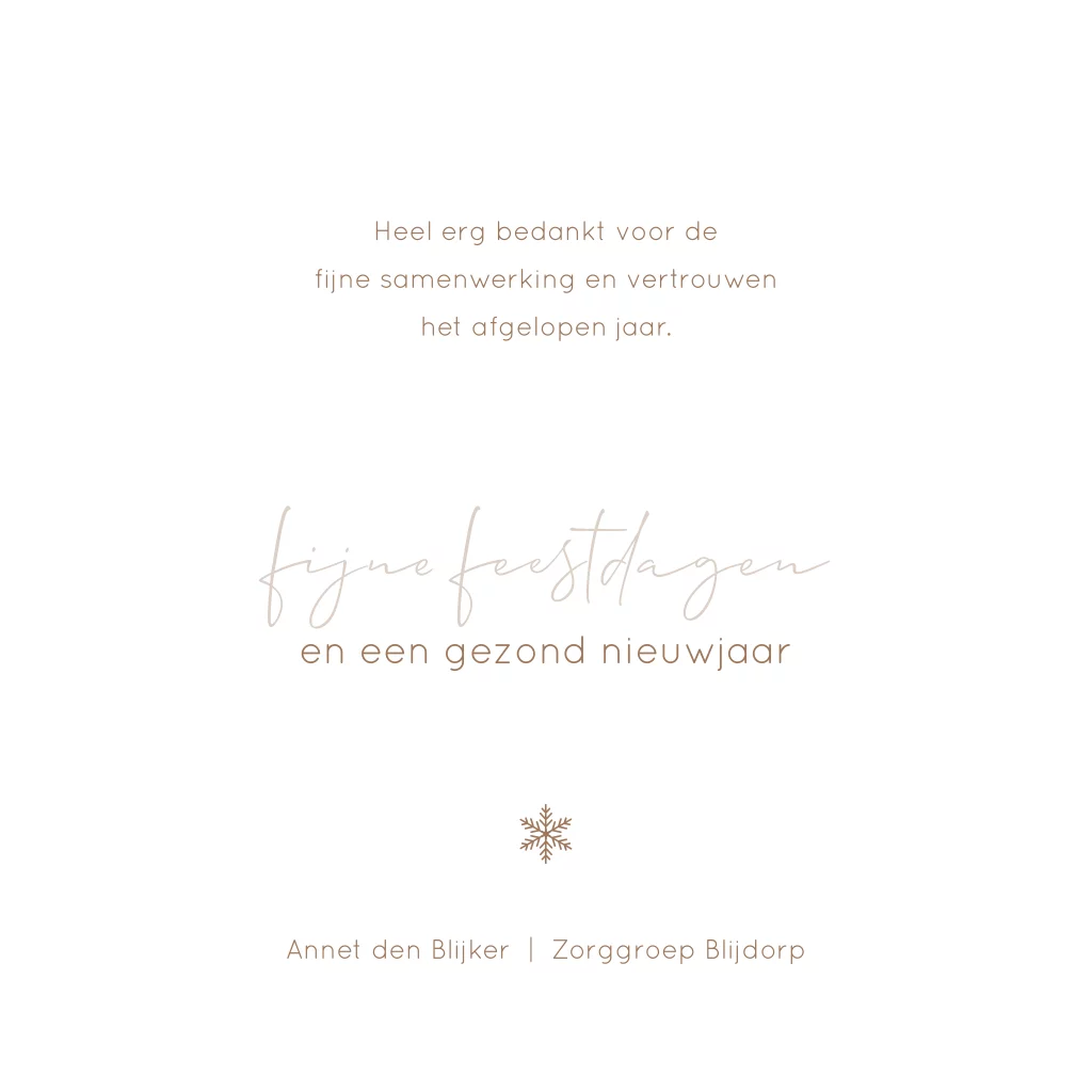 Het is mogelijk op de binnenzijde van deze kerstkaart je eigen bedrijfslogo toe te voegen. De afbeelding van het logo dient als voorbeeld en wordt niet gedrukt. Deze kun je verwijderen of plaats hier je eigen logo overheen.