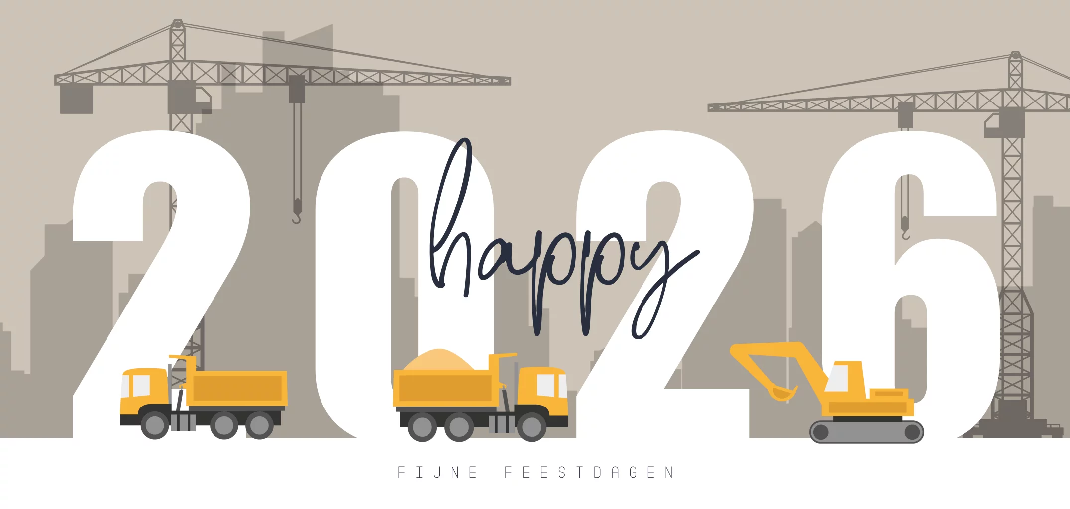Zakelijke kerstkaart met hijskranen en jaartal 2026