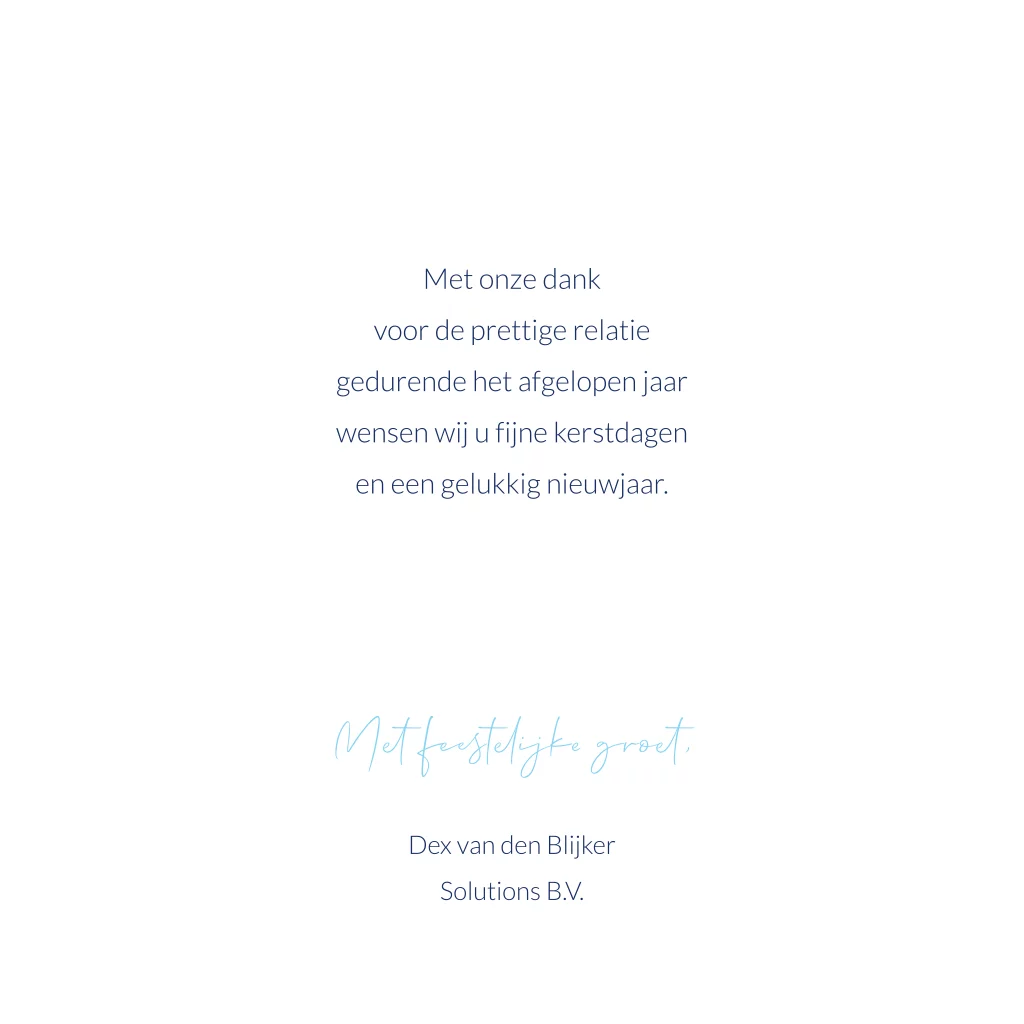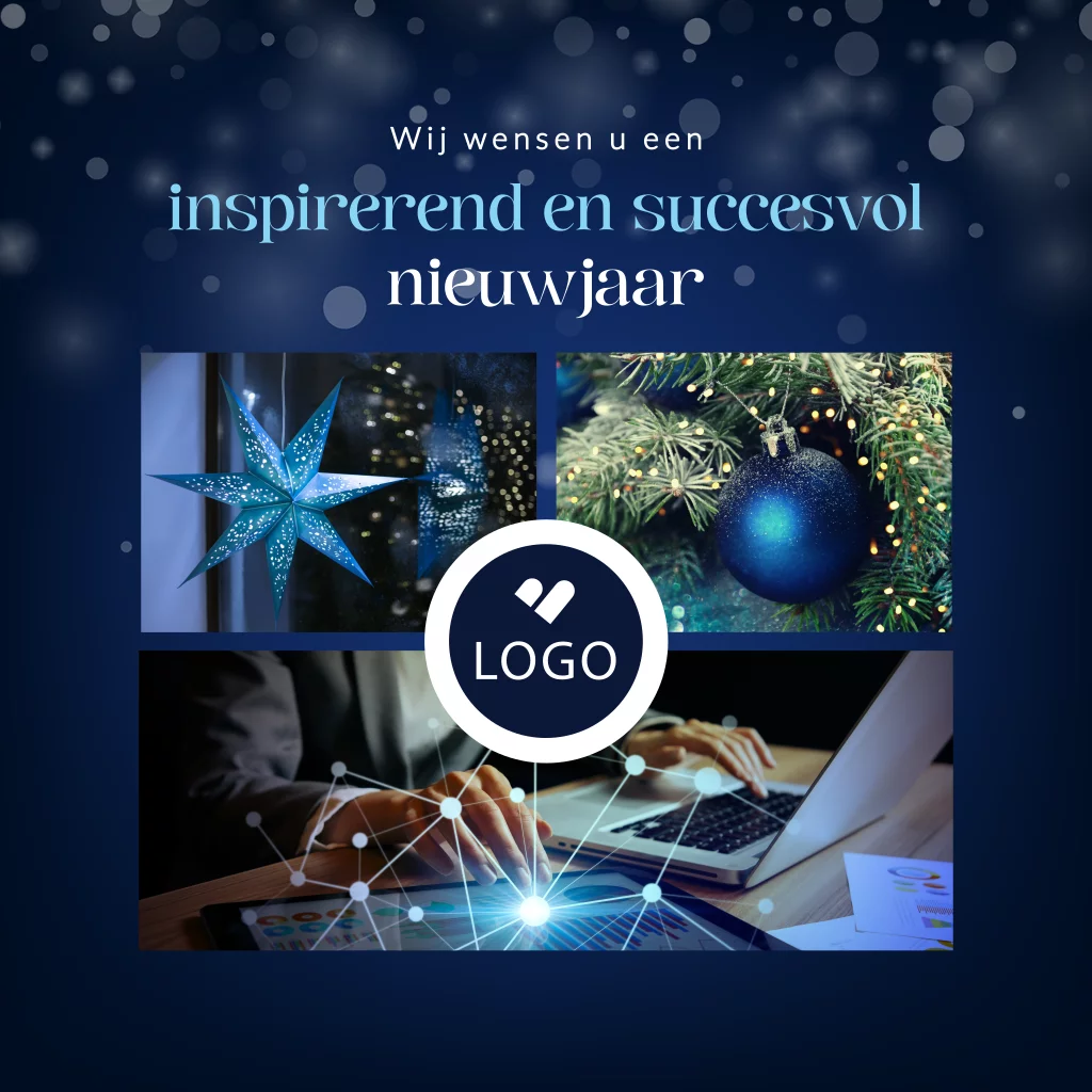 Wens al je zakelijke relaties een inspirerend en succesvol nieuwjaar met deze stijlvolle kerstkaart in blauwe tinten.