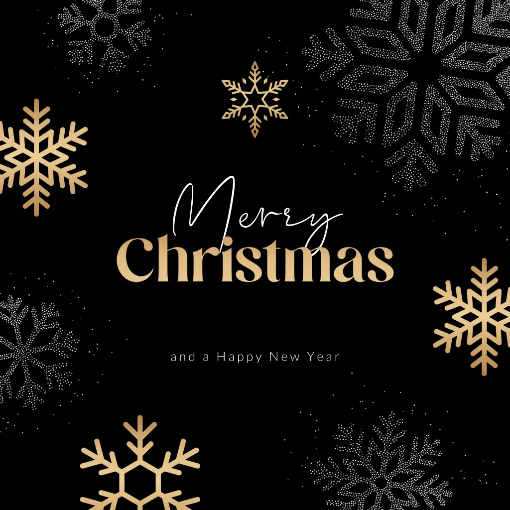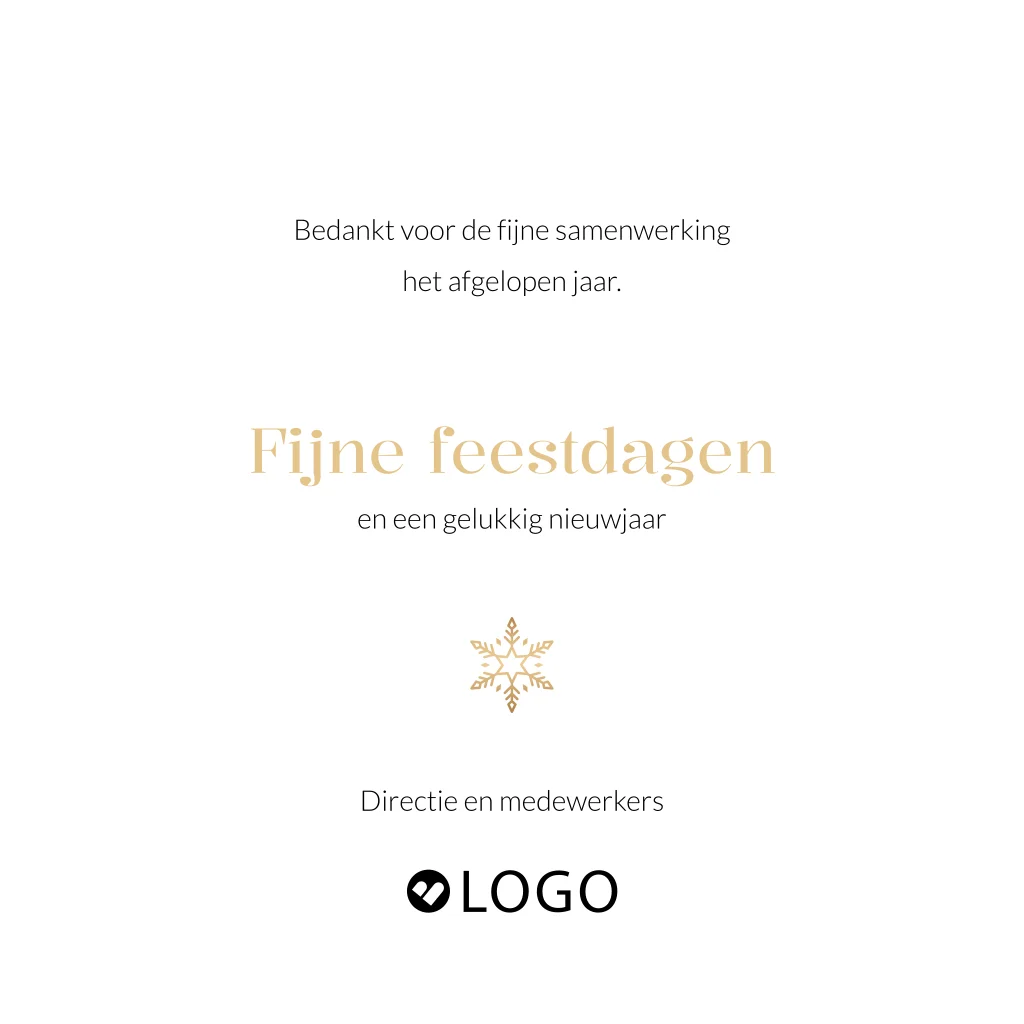 Vier de feestdagen in stijl met onze prachtige zakelijke kerstkaart met goudlook en ijskristallen. Deze kerstkaart is geschikt voor bedrijven uit diverse sectoren en branches. De sneeuw geeft een feestelijk effect op de donkere achtergrond. Bewerk deze kerstkaart naar eigen wens in onze online editor. Kom je er niet uit? We helpen je graag!
