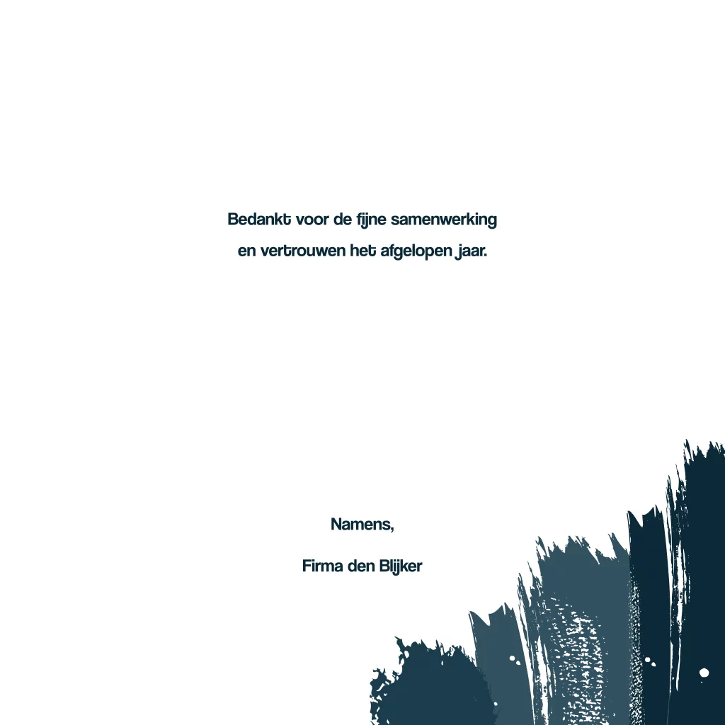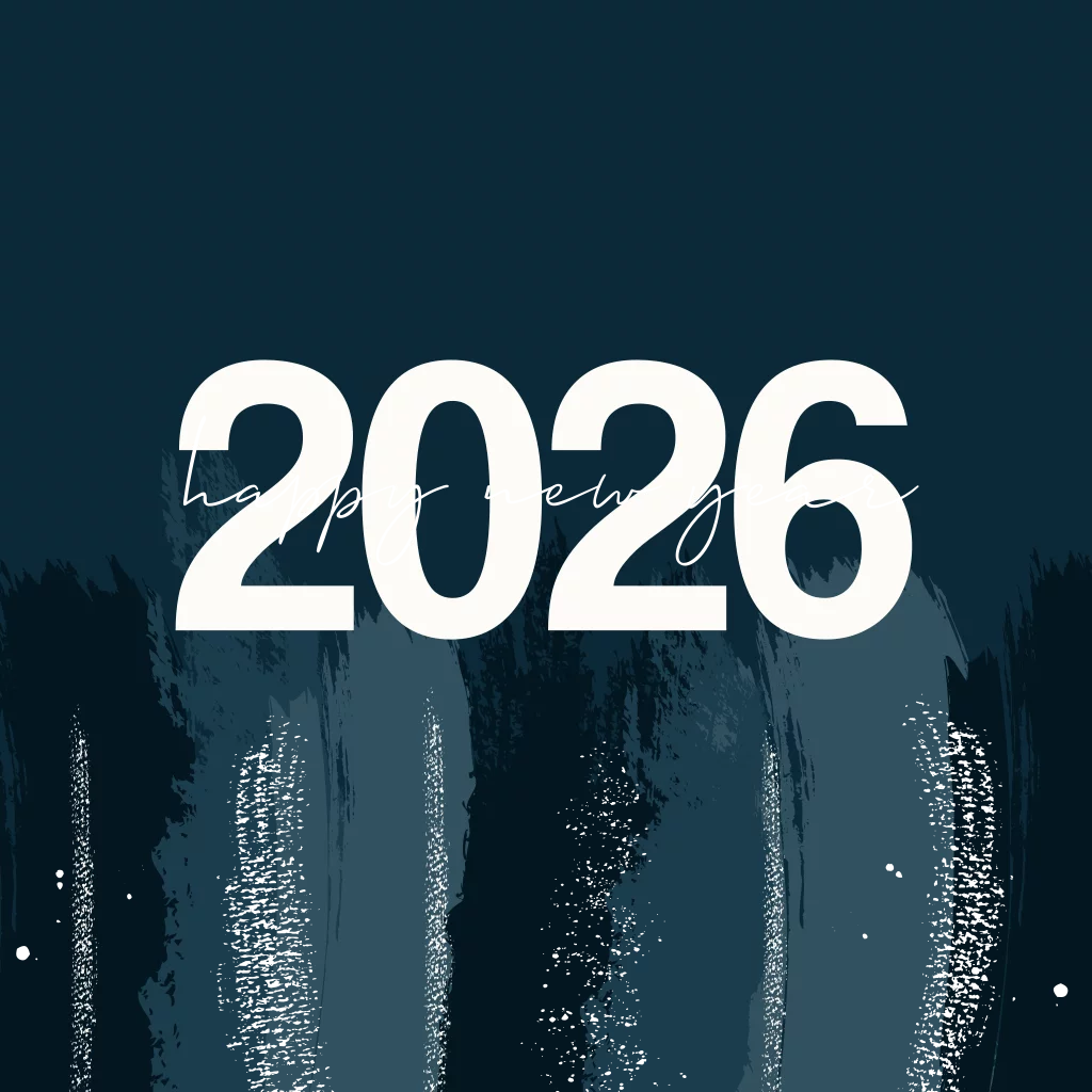 Happy 2026! Dat is wat je jouw klanten of medewerkers natuurlijk van harte toe wenst! Op deze zakelijke kerstkaart het jaartal 2026 in grote witte cijfers met daarvoor in sierlijke letters de tekst happy new year. De sierlijke tekst en vegen worden gedrukt in echt goudfolie. Tegen de donkerblauwe achtergrond springt dit er extra uit en geeft het een luxe uitstraling aan de kerstkaart.
