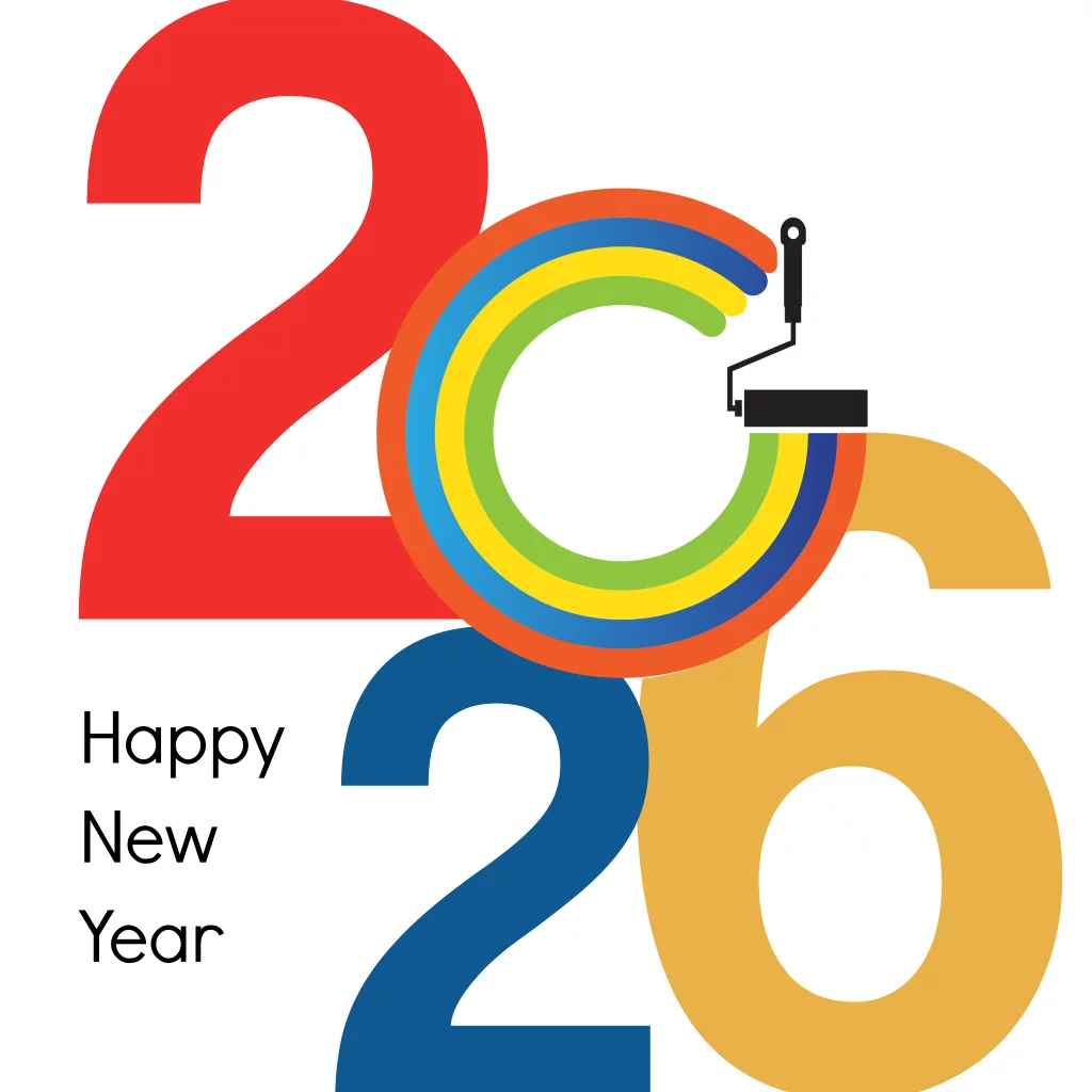 Zakelijke kerstkaart met jaartal 2026 en verf roller
