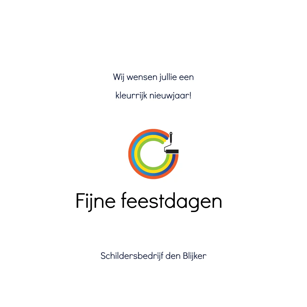 Zakelijke kerstkaart met vrolijke kleuren en verfroller: speciaal voor een schildersbedrijf. Wens jouw medewerkers, klanten of cliënten fijne feestdagen en een Gelukkig nieuwjaar met deze mooie zakelijke kaart.