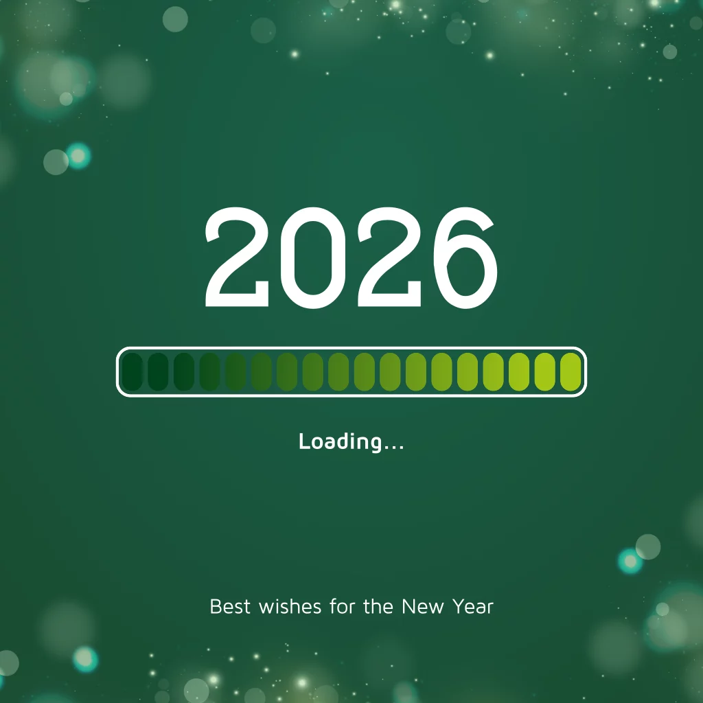 Deze zakelijke kerstkaart heeft een groene sprankelende achtergrond met een loading bar op de voorkant, loading for 2026! Wens met deze kerst kaart je medewerkers, klanten en zakelijke relaties de beste wensen voor het nieuwe jaar. Deze kaart is voor veel bedrijven te gebruiken zoals bijvoorbeeld energie leveranciers.