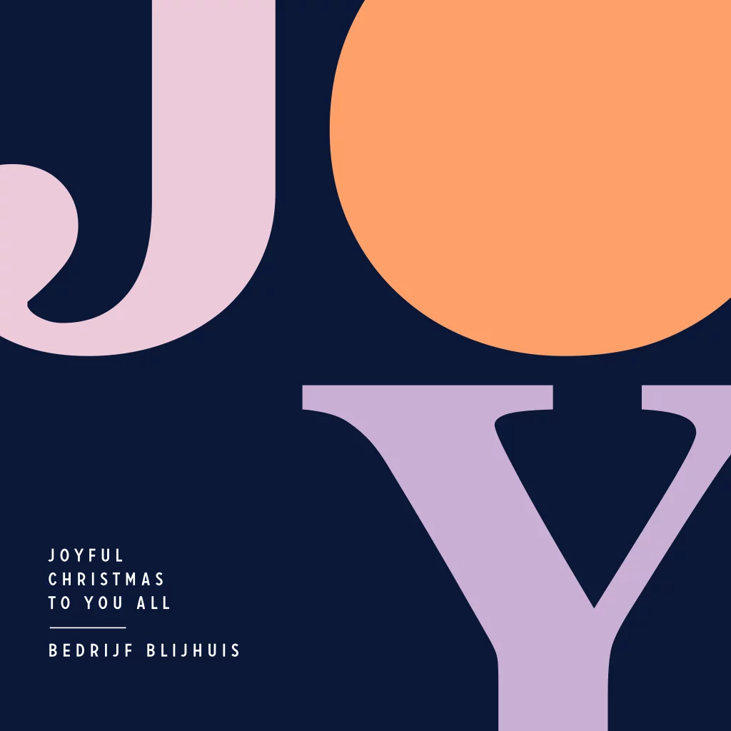 Wens je klanten prettige kerstdagen en een Gelukkig nieuwjaar met deze mooie zakelijke kerstkaart. Op deze rustige kerst kaart een donkerblauwe achtergrond met in witte letters de tekst Joy.