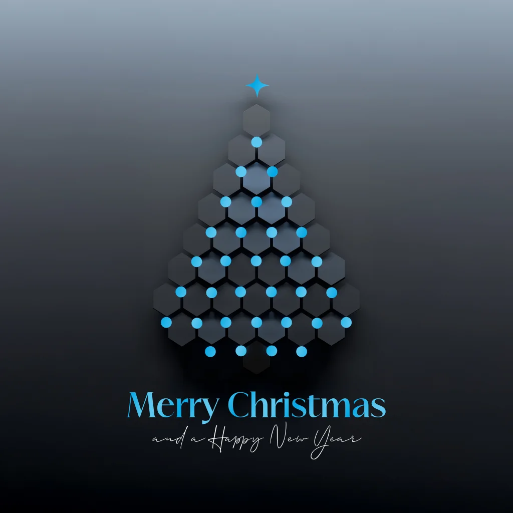 Zakelijke kerstkaart technologie met abstracte kerstboom en hoogglans