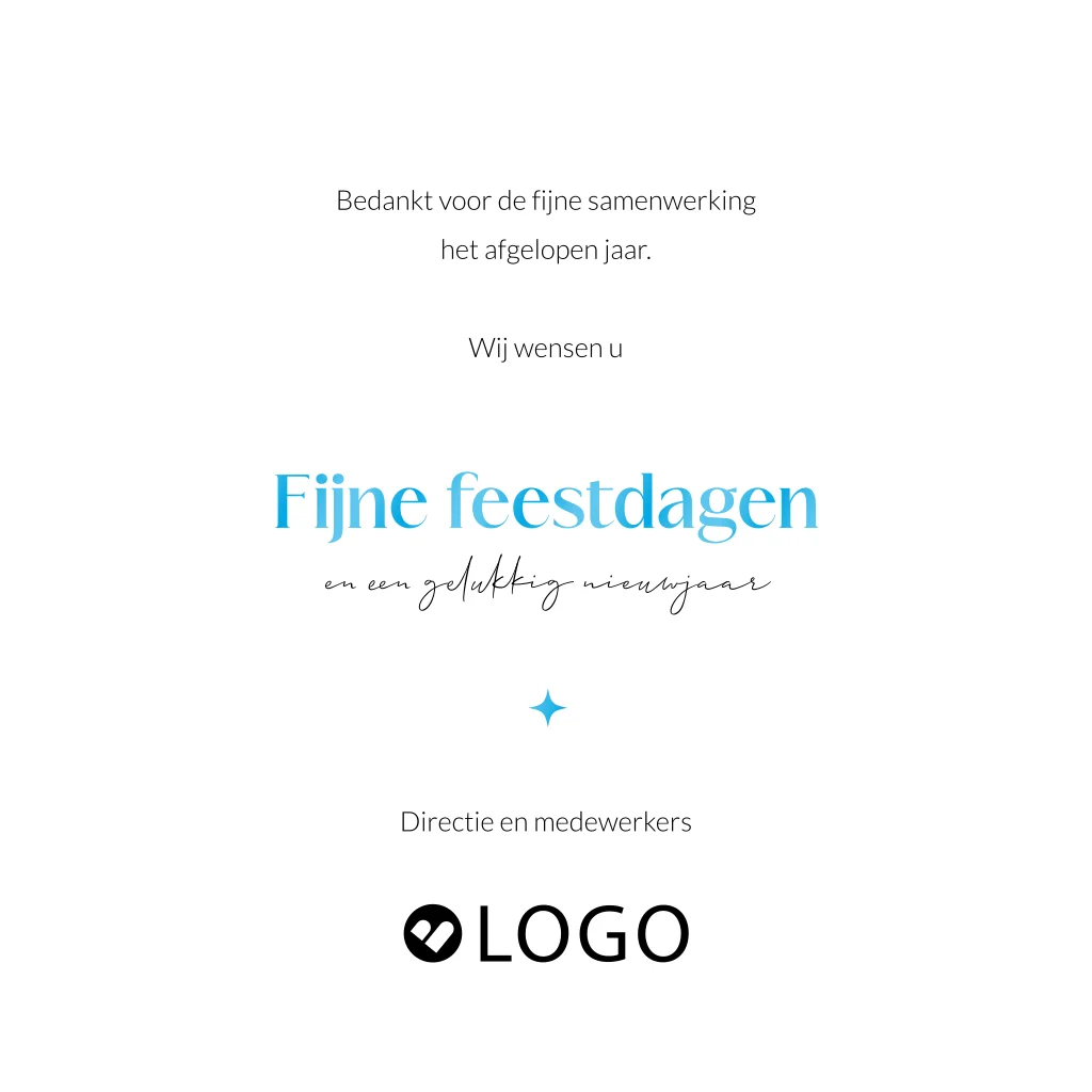 Stoere zakelijke kerstkaart voor de branche technologie. Je ziet op deze zakelijke kerstkaart een abstracte kerstboom met een mooie hoogglans afwerking. Op de binnenzijde is ruimte voor een eigen logo. De afbeelding van het logo dient als voorbeeld en wordt niet gedrukt. Deze kun je verwijderen of plaats hier je eigen logo overheen. Pas deze kaart naar je eigen smaak aan in de editor en combineer met een mooie envelop en sluitzegel om het helemaal af te maken.