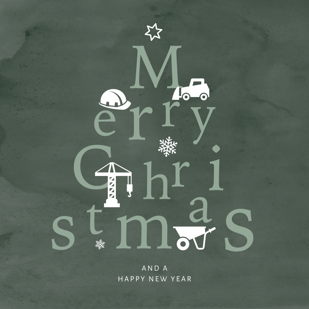 Stijlvolle zakelijke kerstkaart met écht goudfolie. Op deze kaart een mooie groene aquarel achtergrond, een mooie combinatie met de gouden folie. Verder op deze kaart de tekst 'Merry Christmas' in de vorm van een kerstboom met kerst- en bouwiconen als kerstballen. Deze kaart is daarom helemaal geschikt voor bedrijven in de bouw- en afwerkingsbranche!