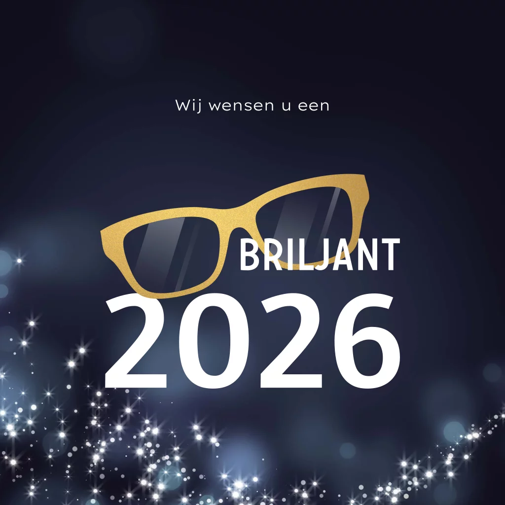 Strakke zakelijke nieuwjaarskaart briljant 2026 met bril