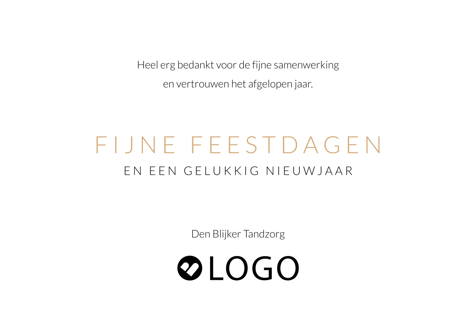 Zakelijke nieuwjaarskaart tandzorg met gouden kies en jaartal