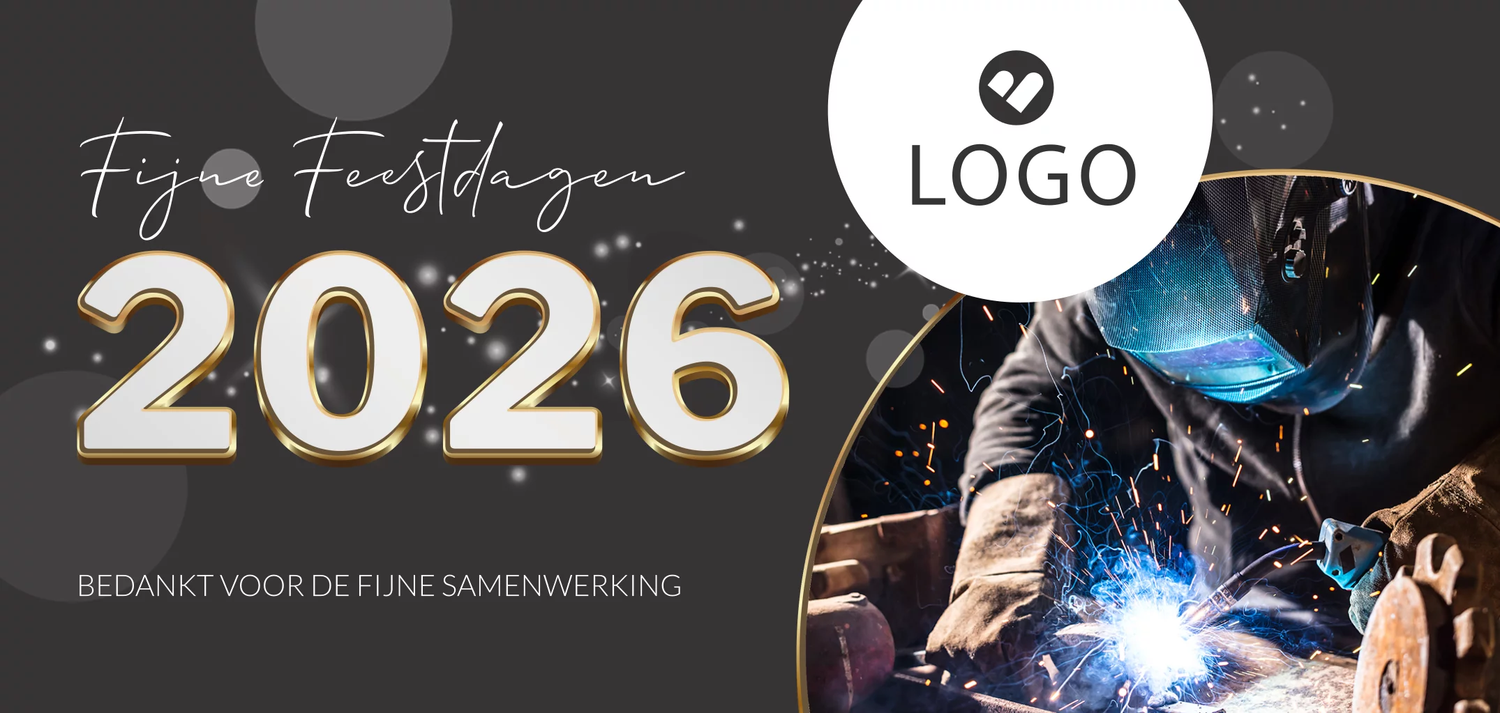 Laat jouw techniekbedrijf stralen tijdens de feestdagen met deze unieke zakelijke kerstkaart. Met het toevoegen van je eigen logo en foto zorg je voor een extra persoonlijk tintje. De gehele kaart kan naar eigen wens aangepast worden in onze online editor. Deze zakelijke kerstkaart bevat de tekst 'Fijne feestdagen 2026, bedankt voor de fijne samenwerking'. Kom je er niet helemaal uit? We helpen je graag!