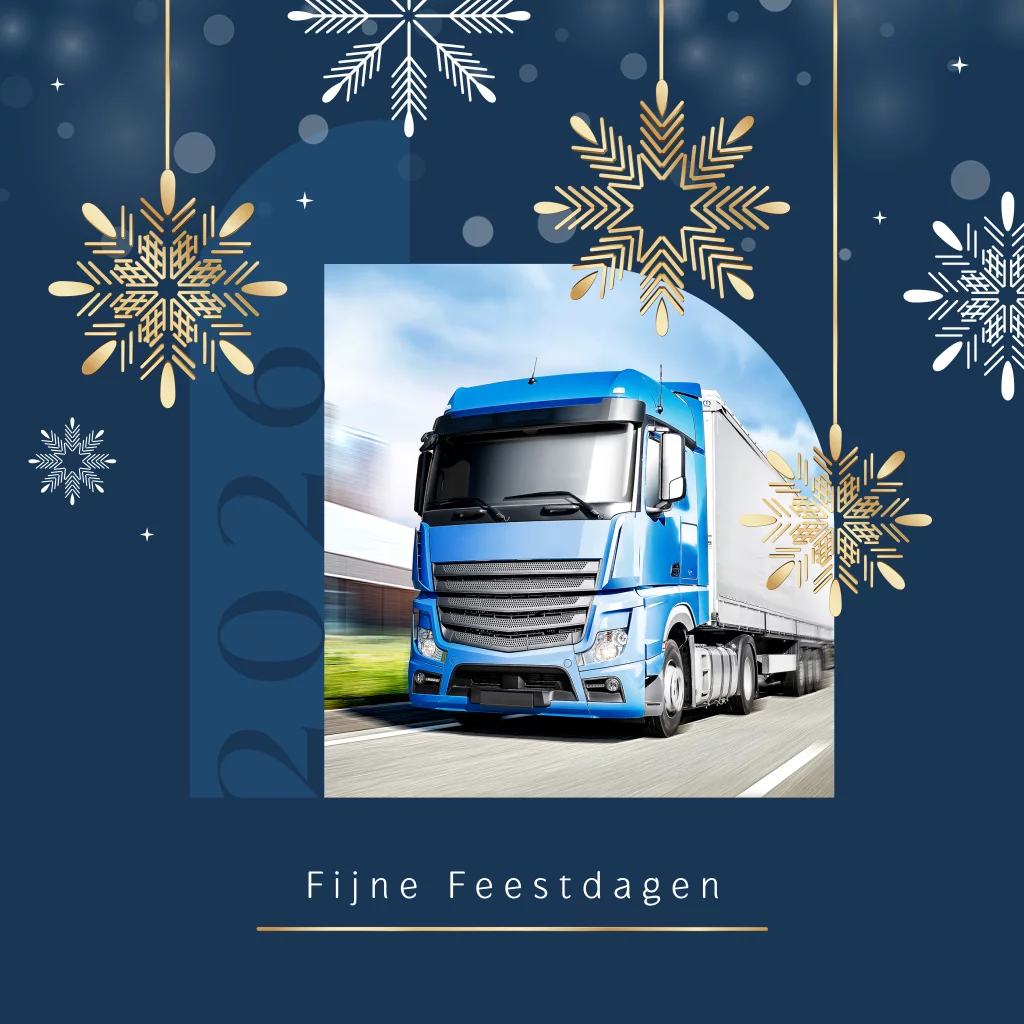 Een winterse zakelijke kerstkaart voor de transport en logistiek branche. Op deze kerstkaart zie je een foto van een vrachtwagen. Deze foto kan naar eigen wens nog aangepast worden in onze online editor. Verder kun je in de binnenzijde van deze kaart je eigen bedrijfslogo toevoegen voor een persoonlijke touch!